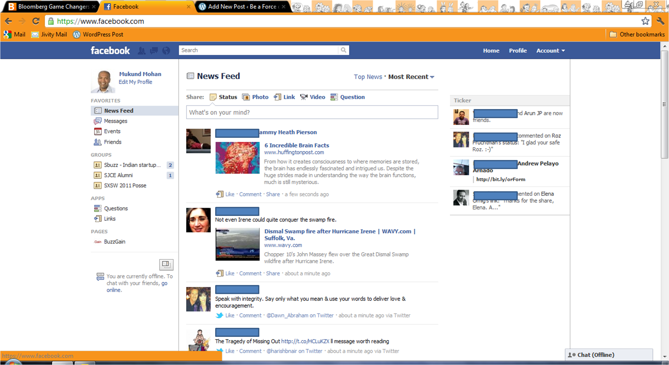 Other The Facebook Ticker: A Real time twitter update August 28, 2011 Mukund Mohan I love the new Facebook Ticker on the right side. I think this is more a take on twitter real time feed and a response to G+ Facebook Real Time Ticker Discover more from Mukund Mohan Subscribe to get the latest posts sent to your email. Type your email… Subscribe Related