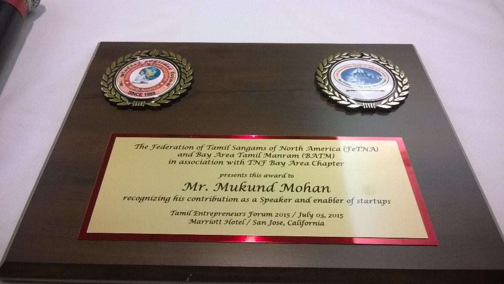 Yesterday I attended and participated on the panel and judged the Tamil Entrepreneur Forum 2015 event. It was a gathering of about 200 folks from the Tamil community all over the US. This was the first time we had a pitch session and Lena Kanappan introduced the format as a way to support early stage entrepreneurs.