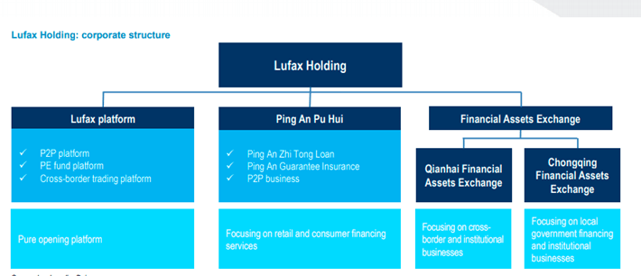 segments, Lufax platform, Ping An Pu Hui (Pu Hui), and the 2 financial asset exchanges, Qianhai (QEX) and Chongqing Financial Assets Exchange (CQFAX).