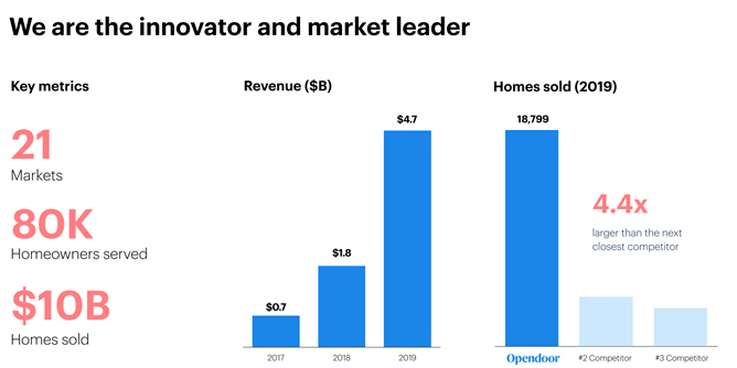 There are over 20 companies in various markets, but the leader is Opendoor, followed by Zillow Offers and Offerpad.