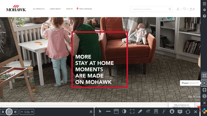 There are some customers I visited (example Mohawk below – visit their website to experience for yourself and notice a small icon on the bottom right) which provide a simple way for accessibility to be solved for < 10% of the disabled audience.