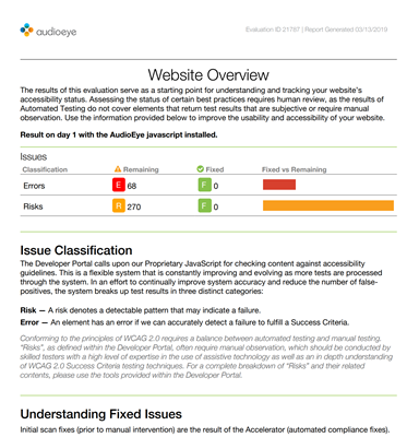 - No real technology to claim their remediation with ML/AI: Partially Agree: This is a simple JavaScript add-on to the website that allows for certain accessibility capabilities to be turned on. Marketing this as AI/ML based remediation is overreach. But, it does the basic job of accessibility testing and reporting.