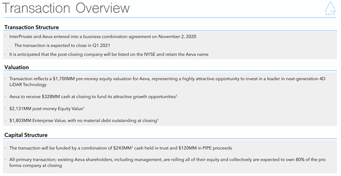 IPV is a NASDAQ listed SPAC and trades today (12/29/20) at $15.12. That implies a valuation for AEVA at over $4B, twice the proposed valuation at time of acquisition announcement.
