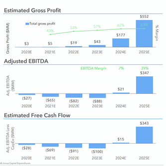 If those projections work out, then given their long term expectation of 62% gross margins, this could end up at nearly $350M in adjusted EBITDA by 2025.