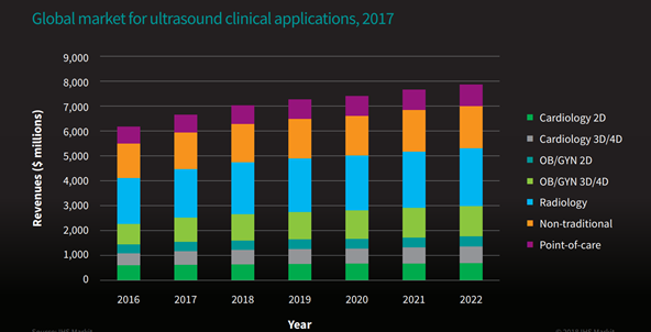 The Ultrasound market is expected to grow to over $10B by 2025.