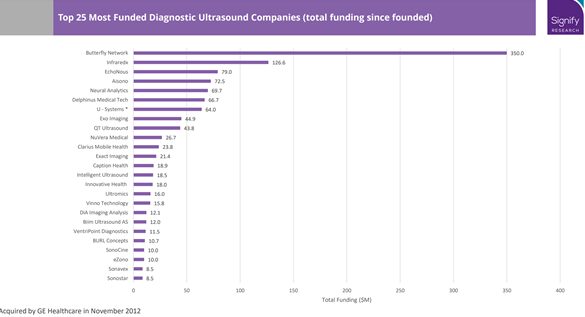 As mentioned over 100 companies old and new startups exist in the space. Butterfly is the most funded, the earliest and has the most patents among the smaller upstarts.