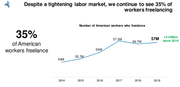Freelancing income exceeds $1 trillion, almost 5% of the United States’ GDP.