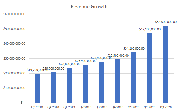 In one word – tremendous. That’s the main reason the stock price is up 900% in 2020. Growth is accelerating, and I dont believe this is going to slow anytime soon.