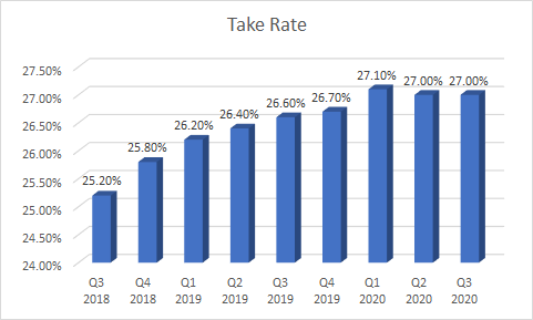 The take rate (commissions) have been growing as well.
