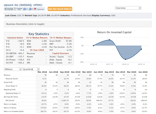 UpWork is the biggest large competitor to Fiverr, but they are not growing as fast (18% vs 80%).