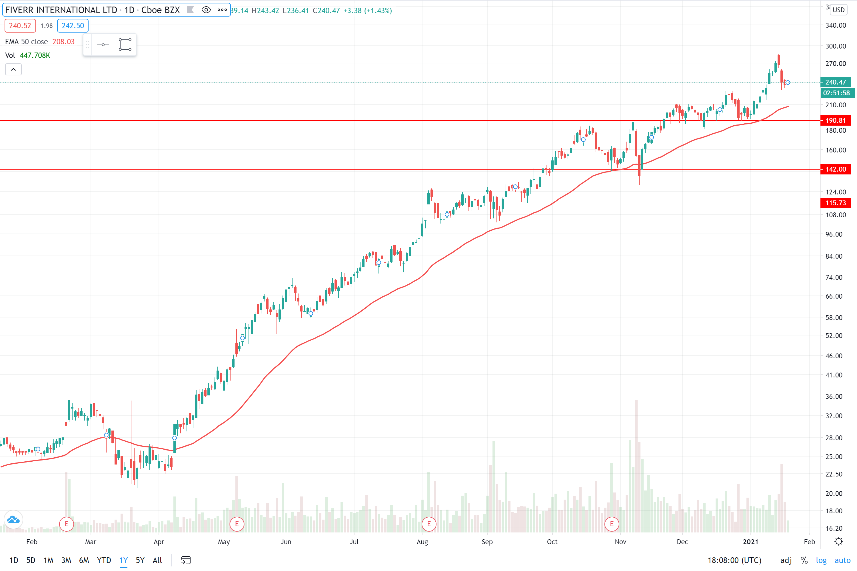 Institutional buying has been strong and over 200 funds own Fiverr. While that is not “tremendous” it is growing.