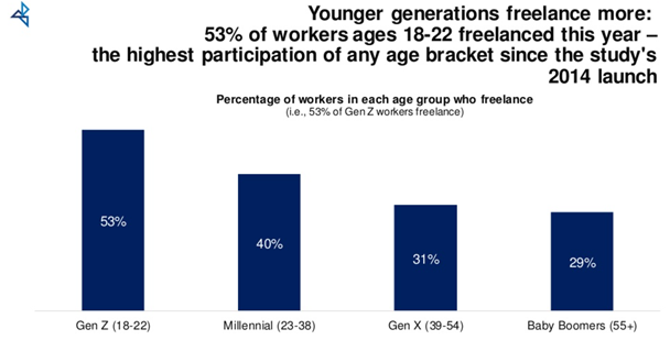 53% of Gen Z workers (ages 18-22) freelance