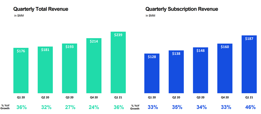 Q1 2021 Total Revenue of $238.6M, up 36% Year-over-year