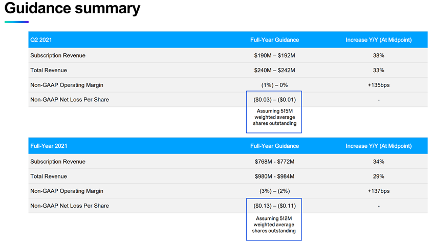 Q2 2021: Total revenue between $240M and $242M (+30% YoY), up from $239M previously.