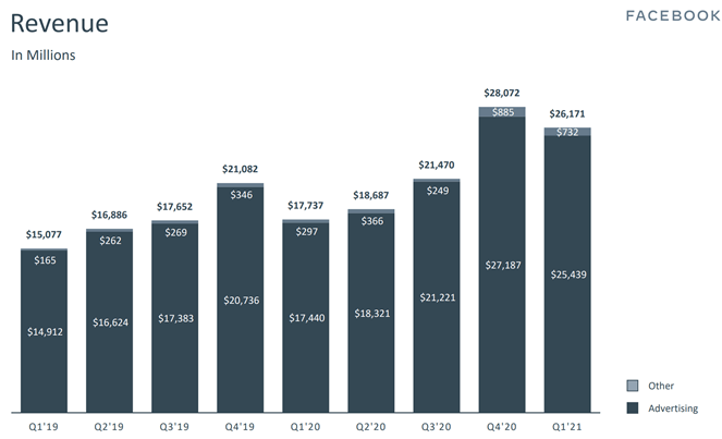 $FB Revenue for the quarter came in at $26.17B (+47% YoY) versus the consensus estimate of $23.67B.