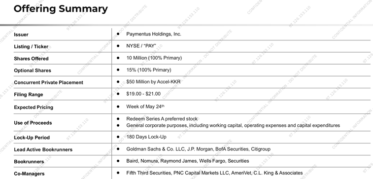 $PAY has raised over $35M over the years from investors including Accel-KKR, which is investing another $50M at the IPO.