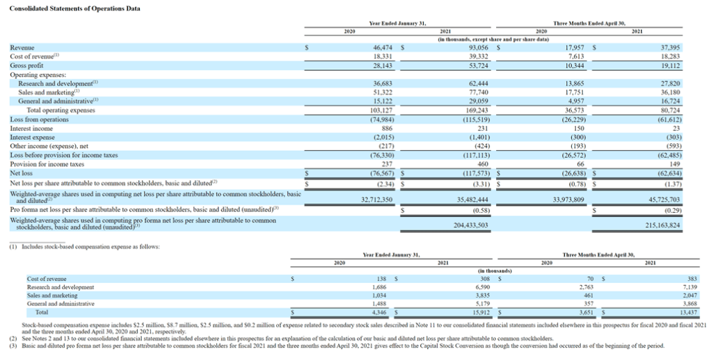 $S SentinelOne has experienced massive growth in recent years, with sales jumping to $93.1M in 2020, +100.2% from $46.5M in 2019. Losses were $117.6M, or $3.31 per share, 53.6 percent worse than a loss of $76.6M, or $2.34 per share the year earlier.