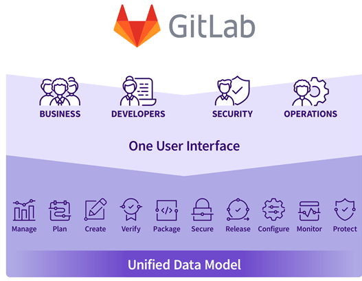 Finally $GTLB helps to protect the production deployment, or Protect, and managing the whole cycle with value stream analytics, or Manage.