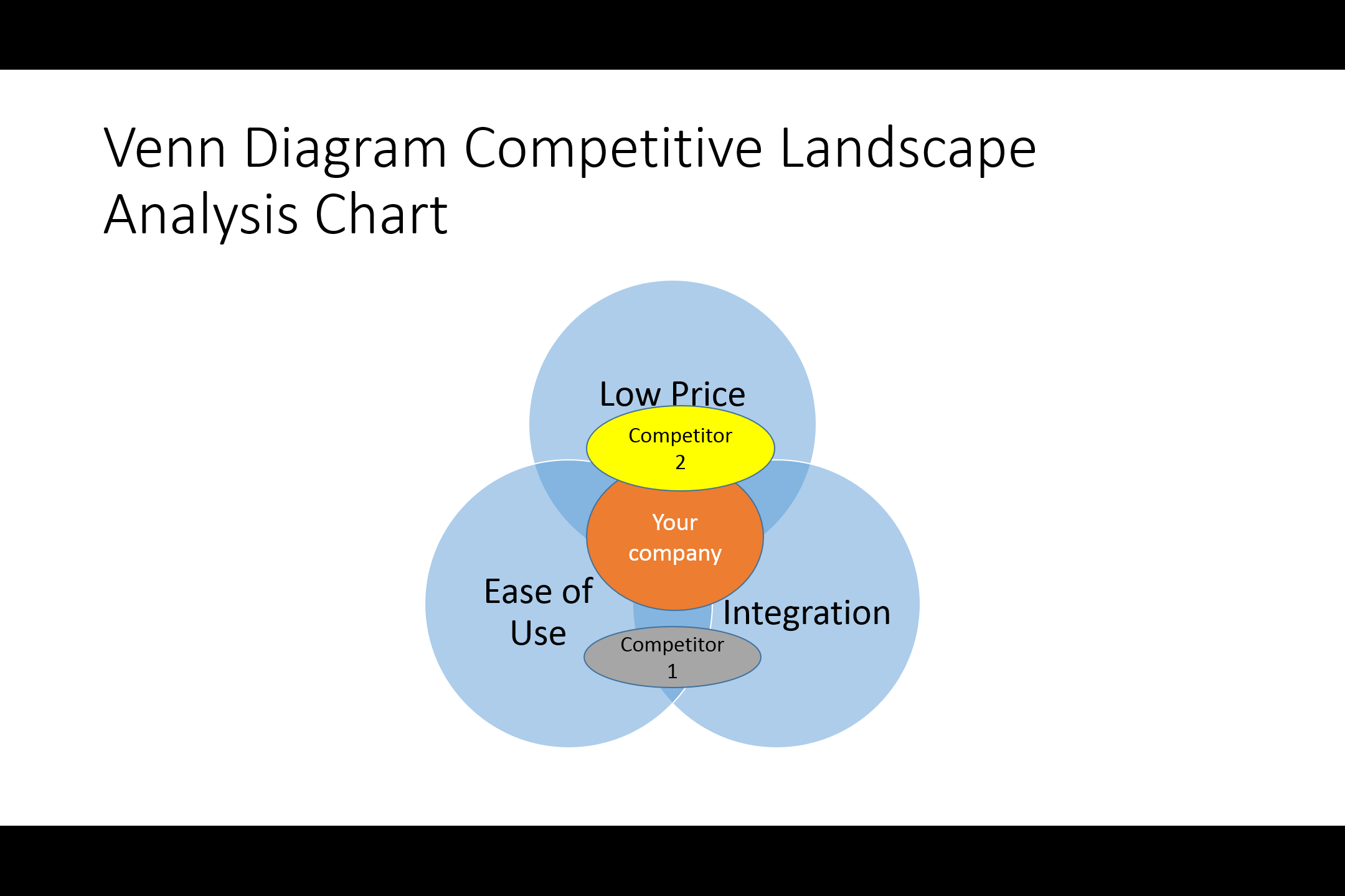 The Venn diagram is best used when you can show that you have the capability to showcase you in the center and competitors on other intersections.