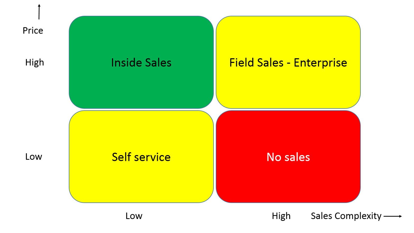 If however, your product is priced high and your complexity is low then you will build an inside (phone) sales team.