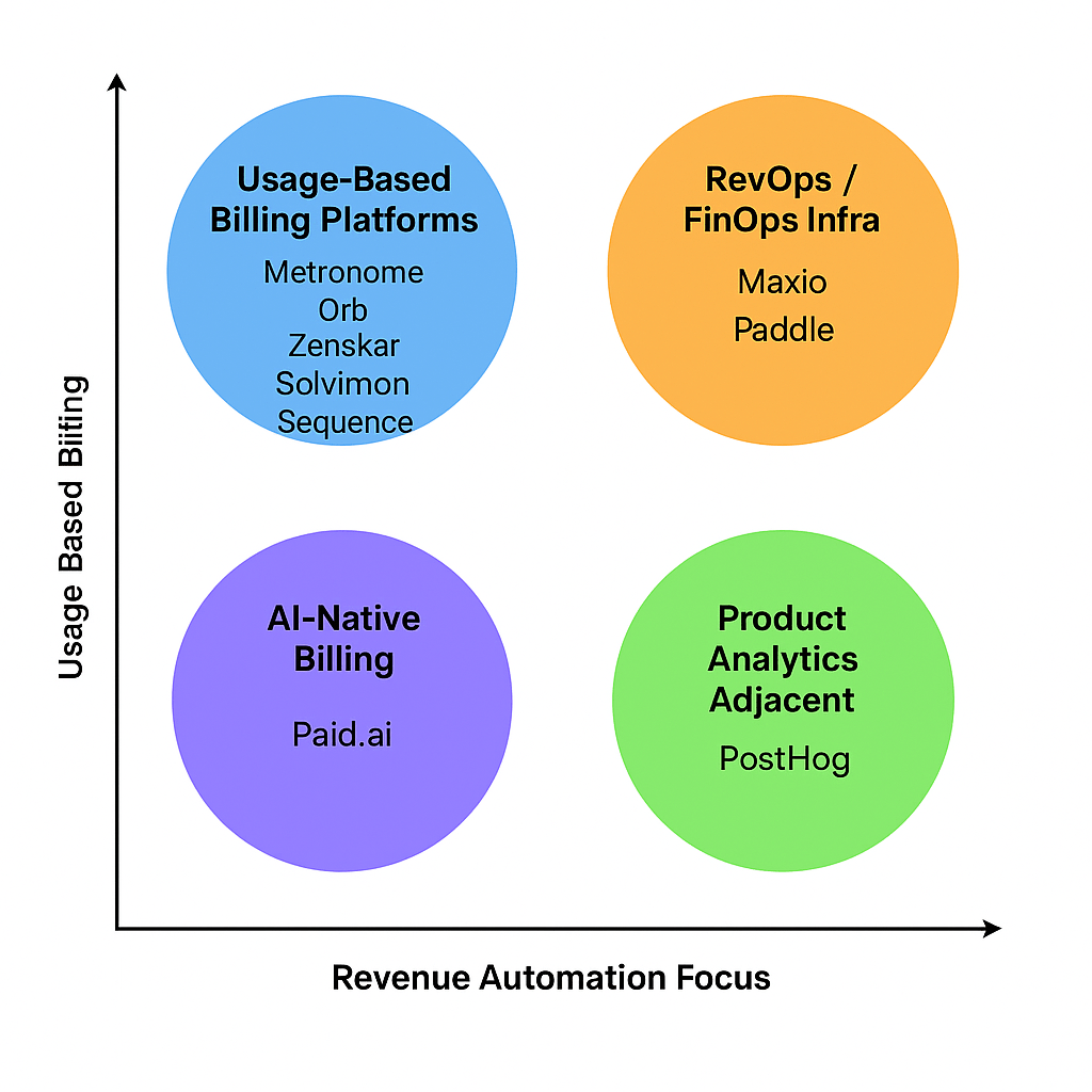 In this post, we break down the emerging landscape of modern revenue infrastructure by analyzing 9 standout companies: Metronome, Orb, Maxio, Paid.ai, Solvimon, Zenskar, PostHog, Sequence, and Paddle.